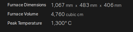 One of the few pieces of useful information available on the Markforged website is that their furnace can reach a peak temperature of 1300°C:
