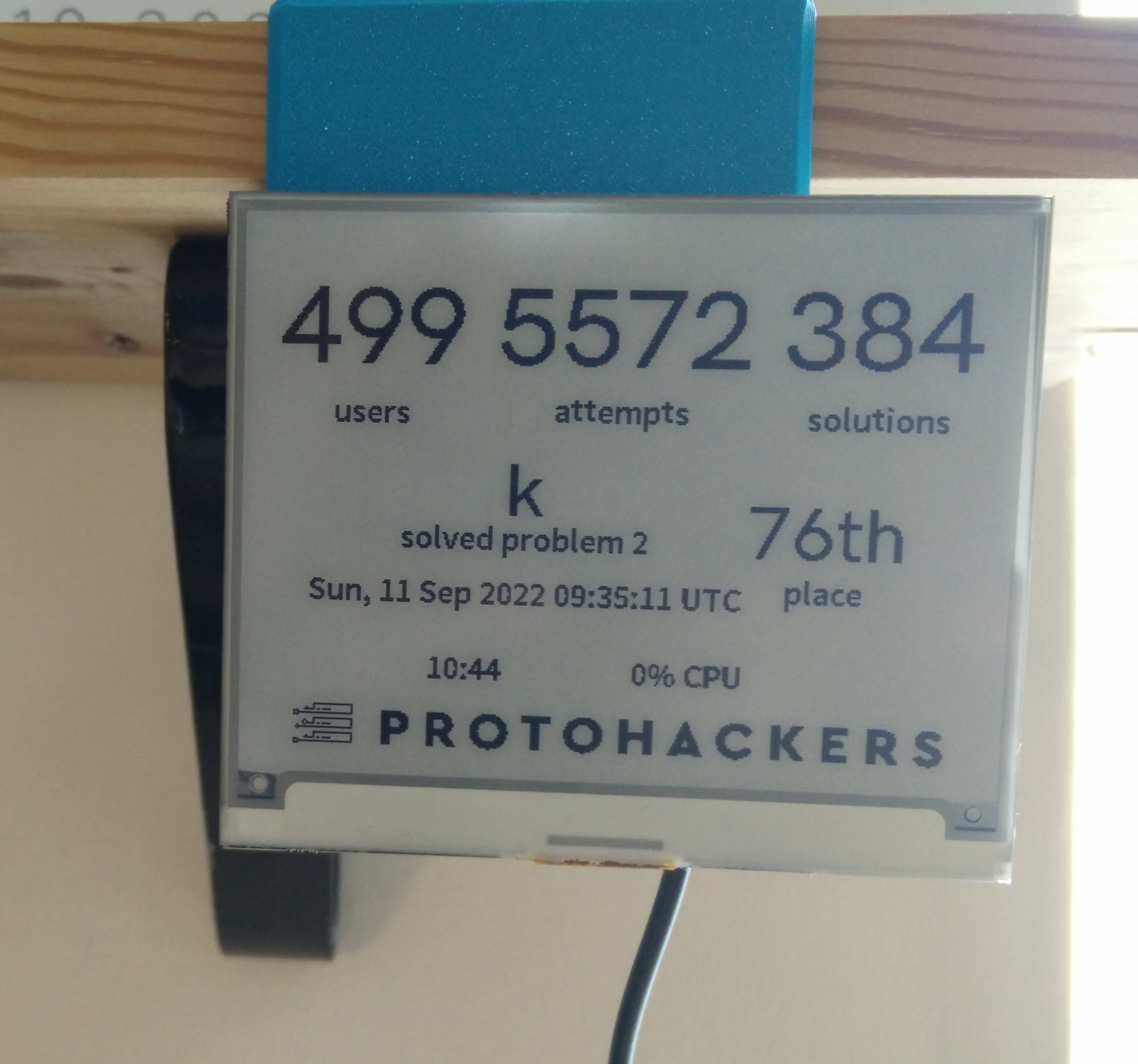 I have an InkyWHAT screen hanging from a shelf next to my desk with a 3d-printed bracket: