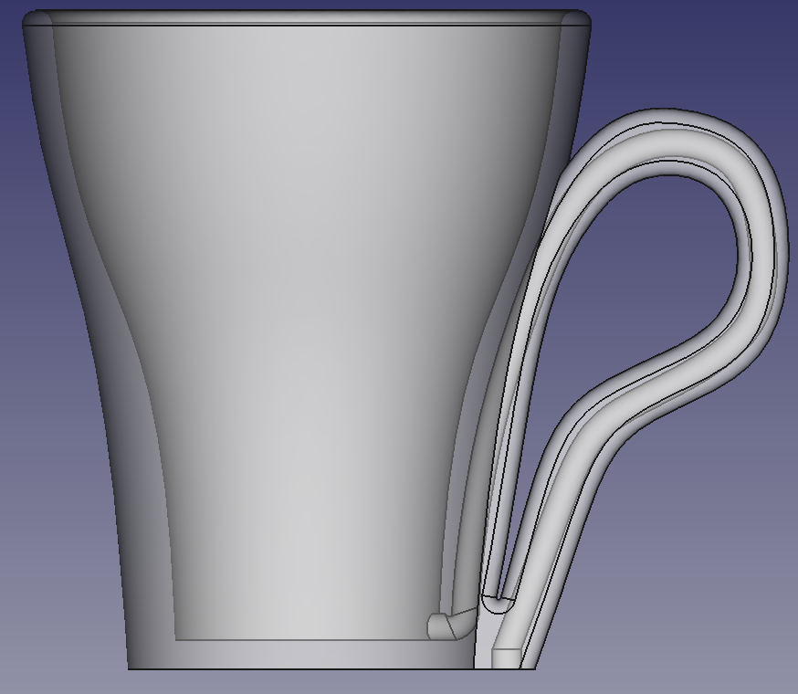 I got back in FreeCAD and modelled a new mug, using what I learnt about fluid mechanics and tobr's tube routing idea.