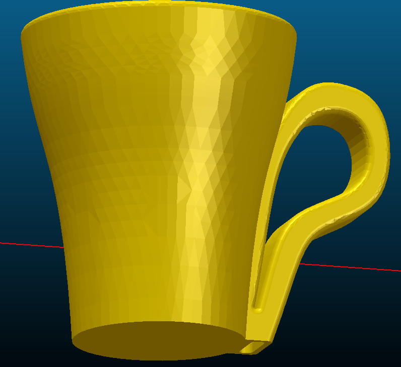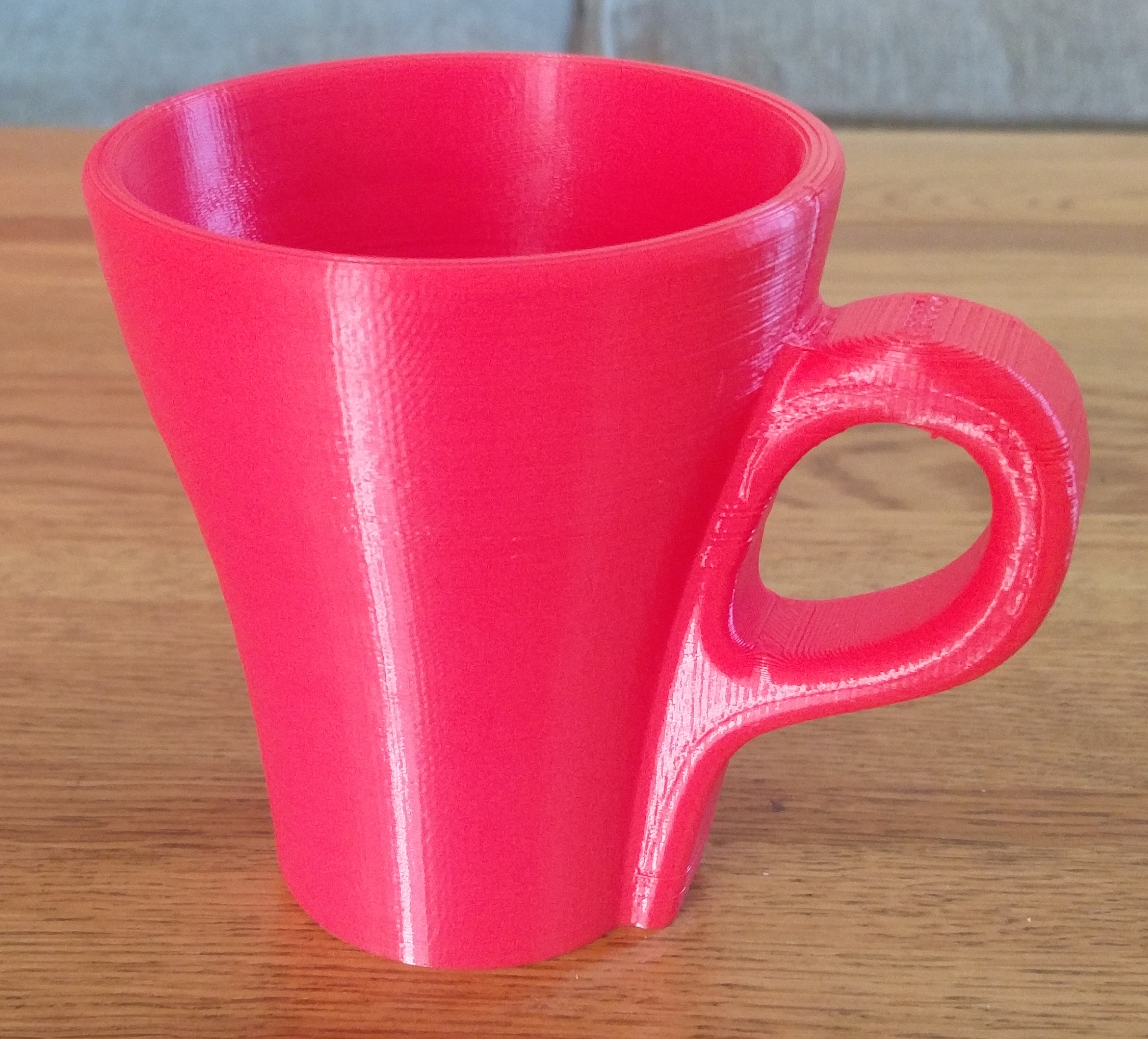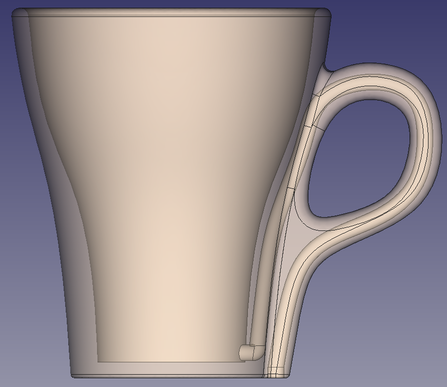 I'm pretty much happy with the performance of this mug, but I don't like how it looks. The handle looks rather contrived, not nearly as elegant as the one in tobr's sketch, and I don't like the tesselation pattern on the surface: