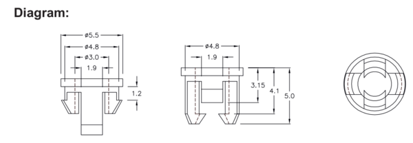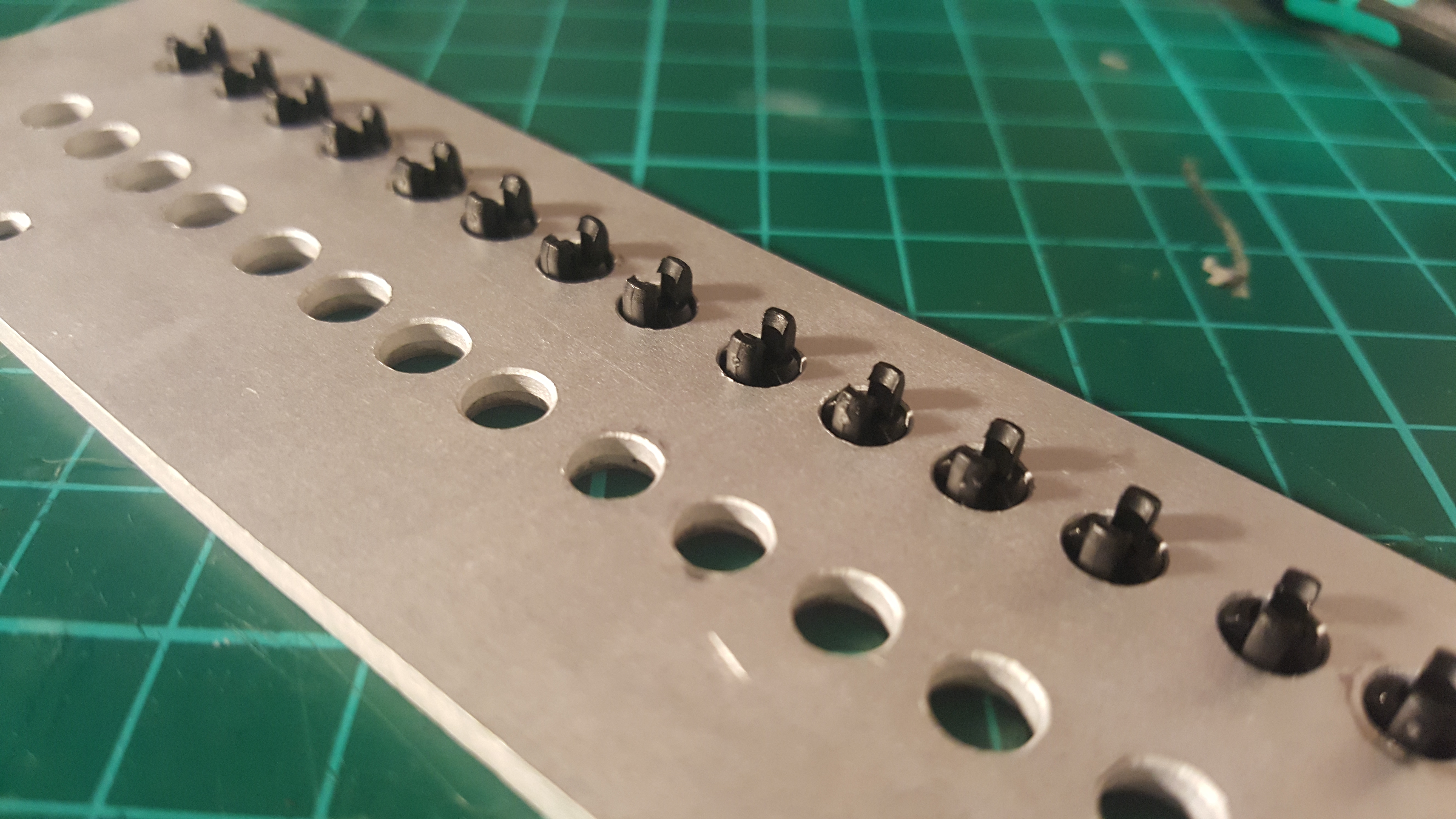 That way we get the stiffness of a 3mm panel while presenting a 1.8mm interface to the LED holders. Arguably this is even neater than the recommended installation, because it means the LED holders end up roughly flush with the panel surface instead of sticking out.