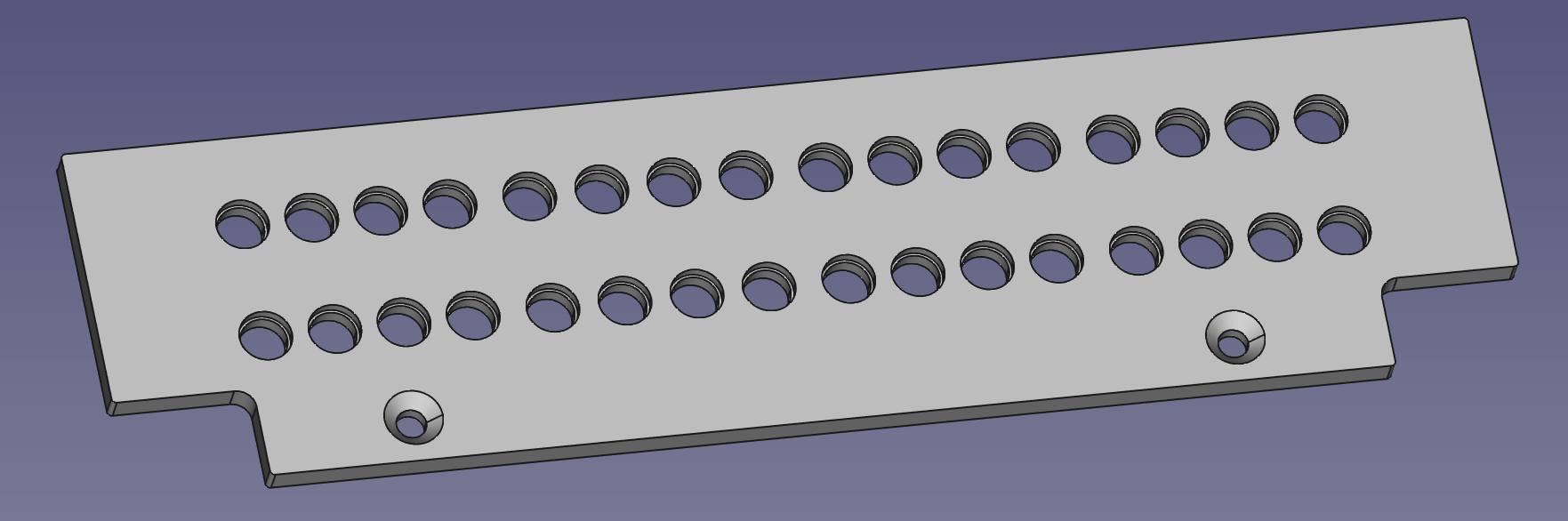 With the mounting problems solved, it's just a case of modelling the part. I used FreeCAD as usual, and all of the CAD files are in the front-panels/ directory in the git repo.